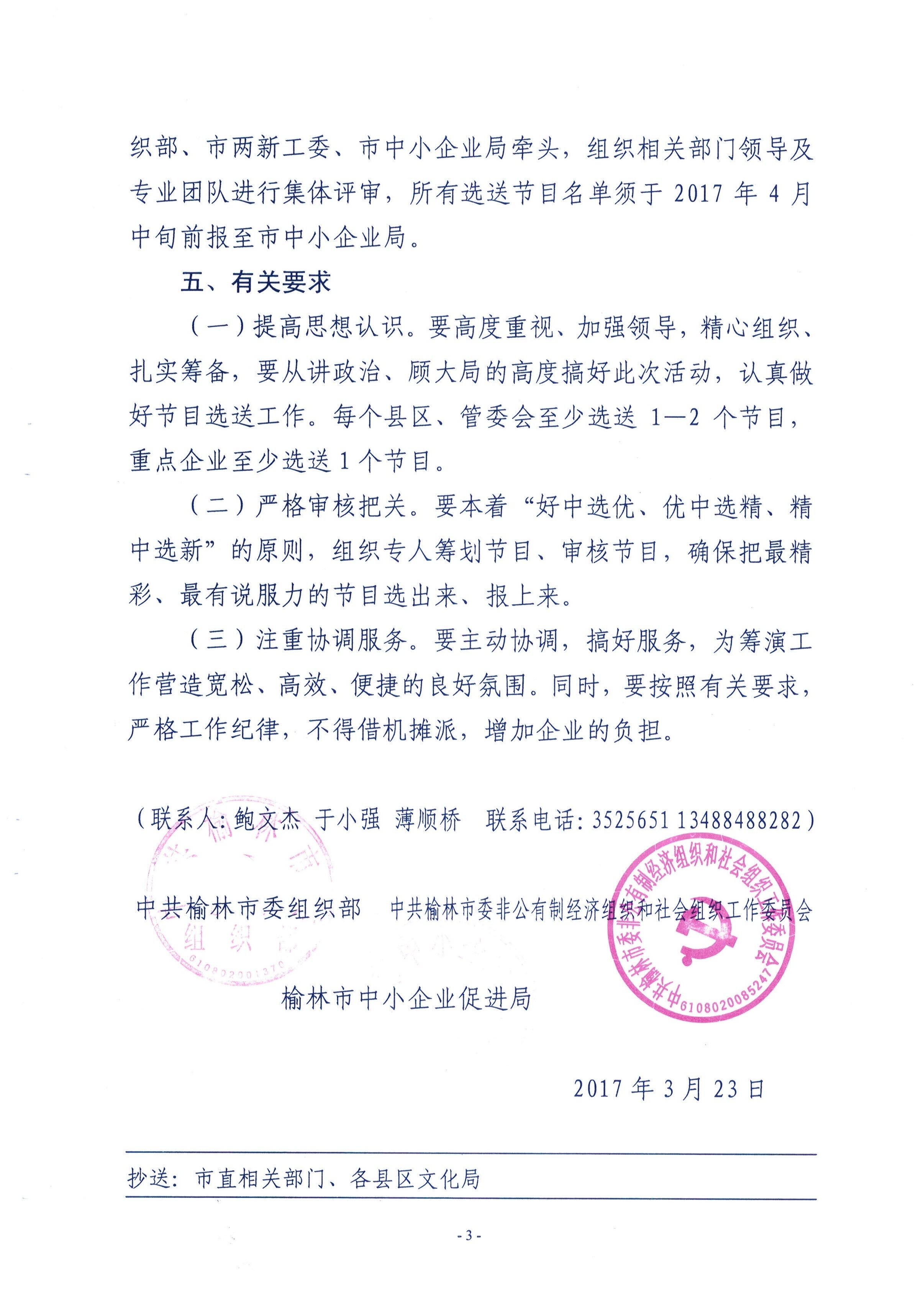 关于征集《榆林市非公企业庆“七一”党建主题文艺晚会》节目的通知