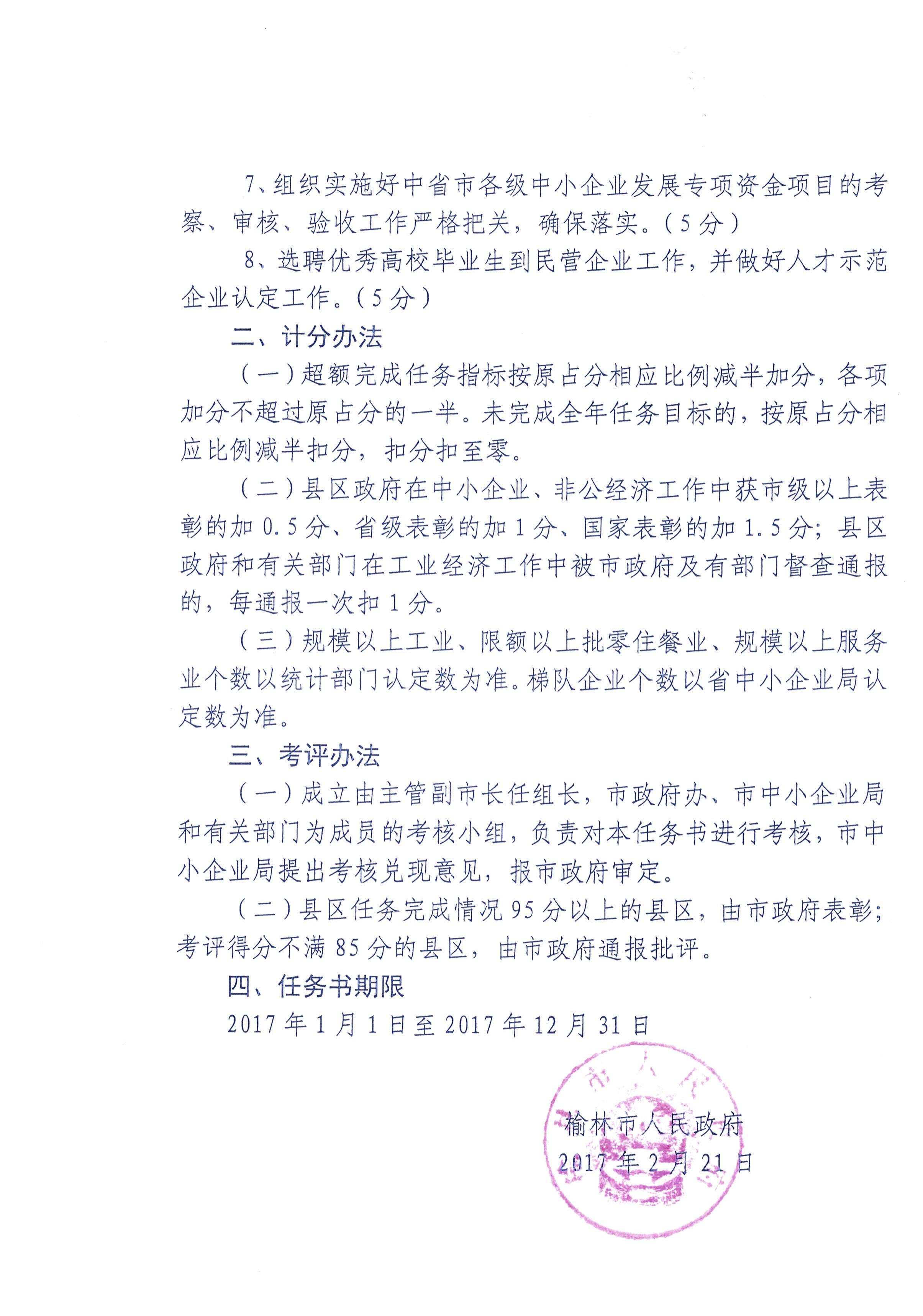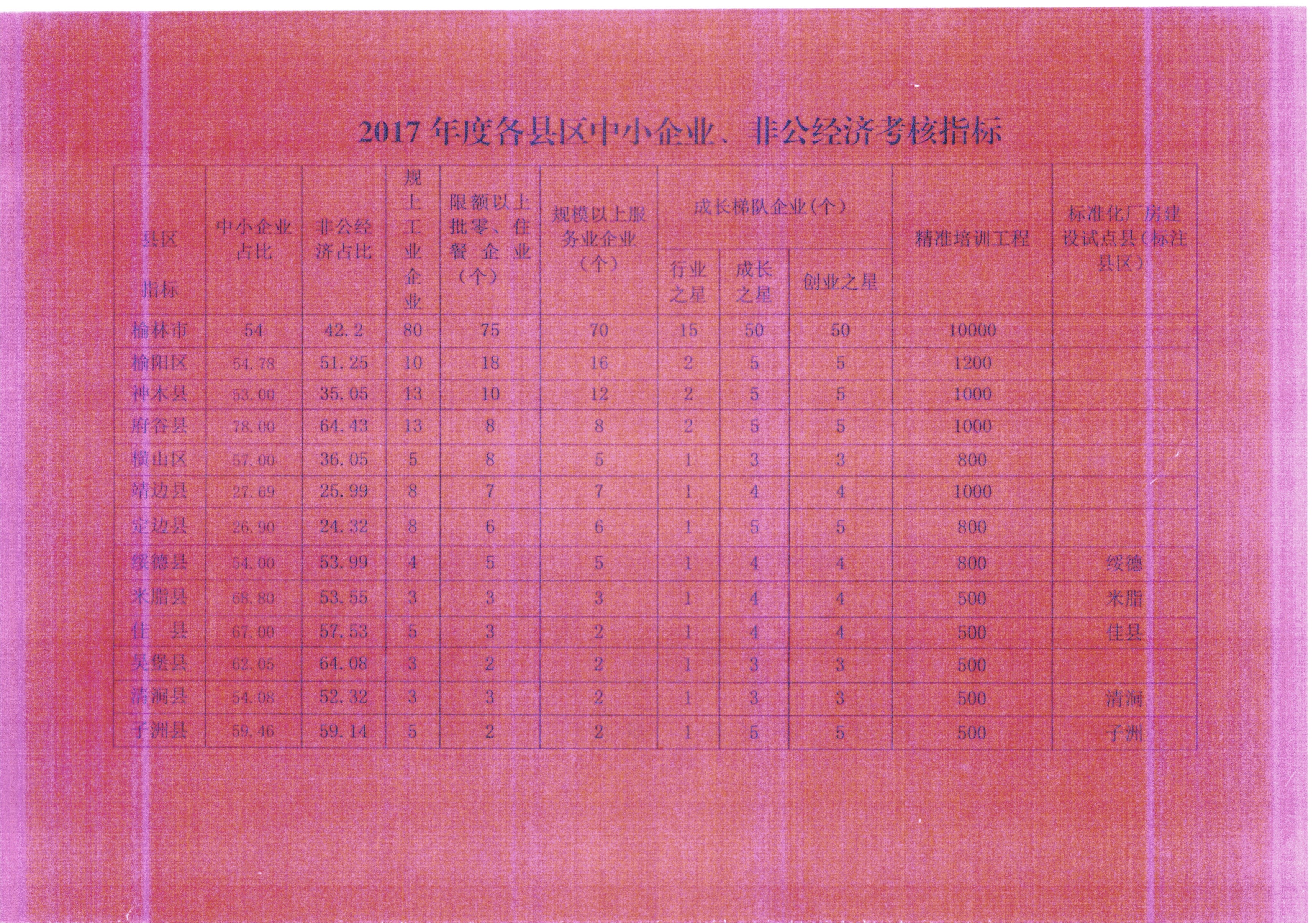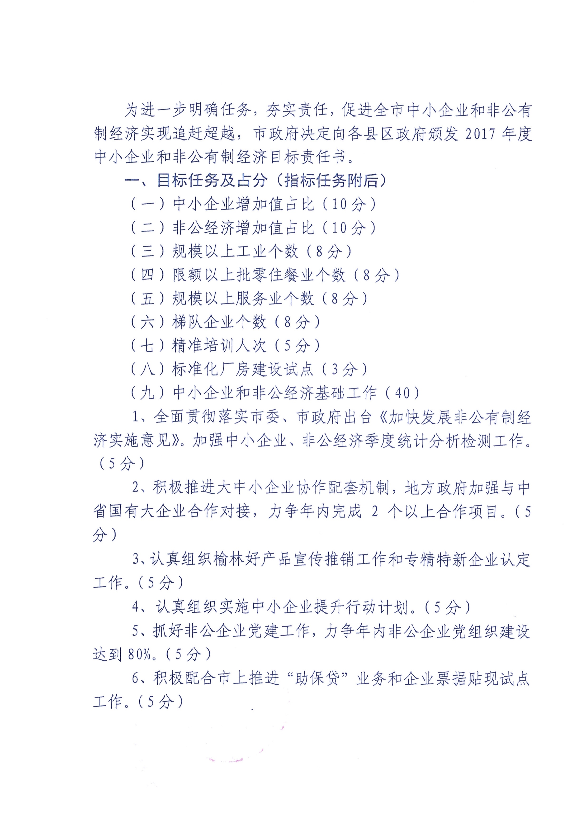 2017年度中小企业和非公有制经济目标任务书