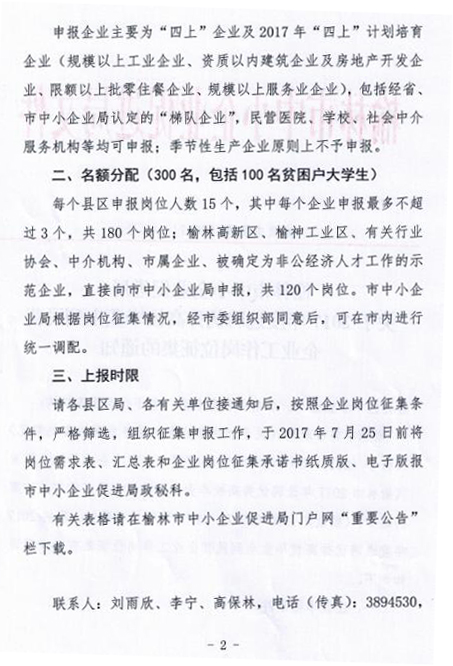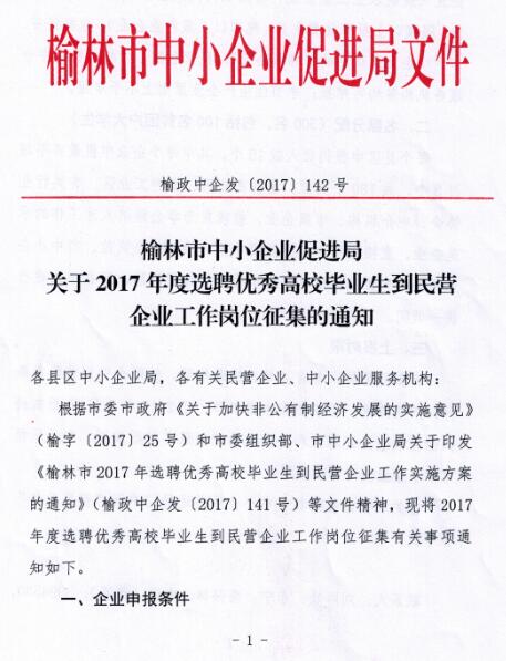 关于2017年度选聘优秀高校毕业生到民营企业工作岗位征集的通知