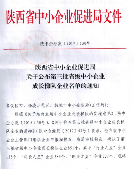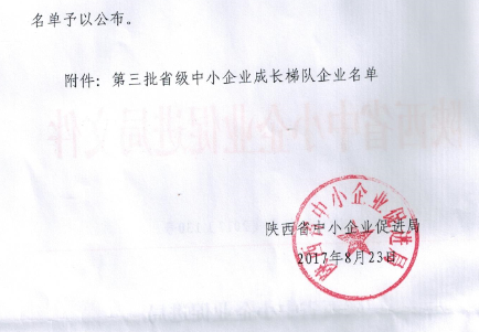 附件:陕西省中小企业促进局关于公布第三批省级中小企业成长梯队企业的通知