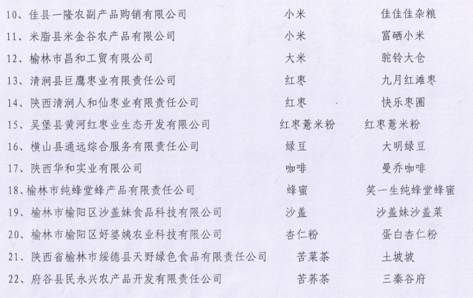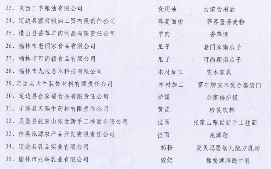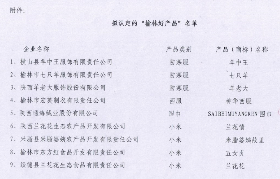 关于对拟认定的“榆林好产品”的公示